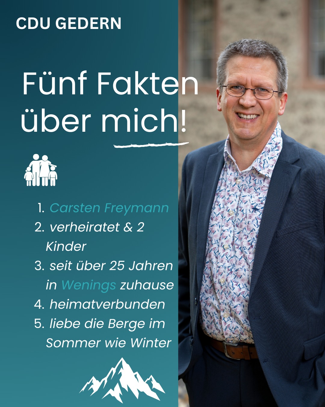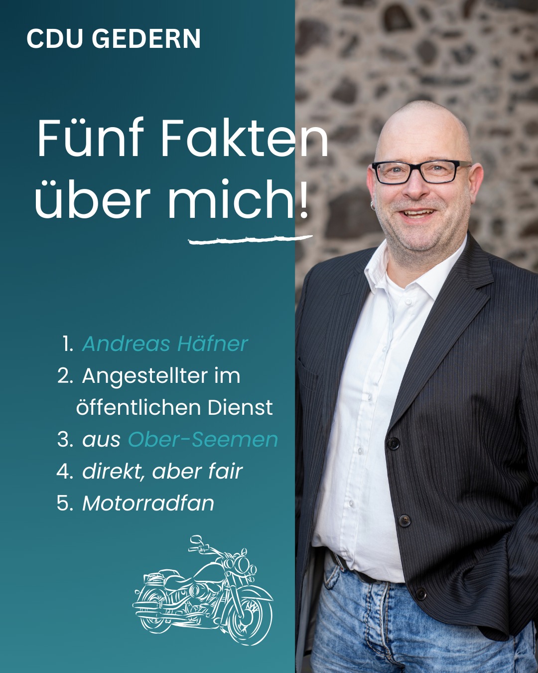 mehr👉 Fünf Fakten über unseren Kandidaten für euch mit dem Blick eines Zugezogenen: Andreas Häfner Listenplatz 15 Prioritäten setzen. Verantwortlich handeln. Für Gedern. #kommunalwahl2026 #cdugedern #fürgedern