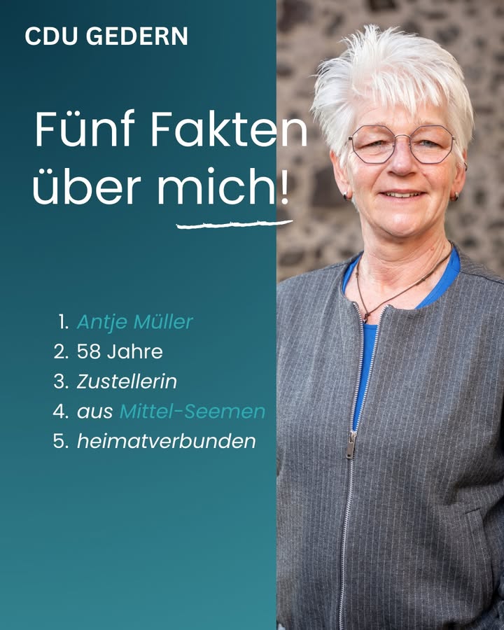 mehr👉 Fünf Fakten über unsere Kandidatin für euch mit Heimatverbundenheit: Antje Müller Listenplatz 14 Prioritäten setzen. Verantwortlich handeln. Für Gedern. #kommunalwahl2026 #cdugedern #fürgedern