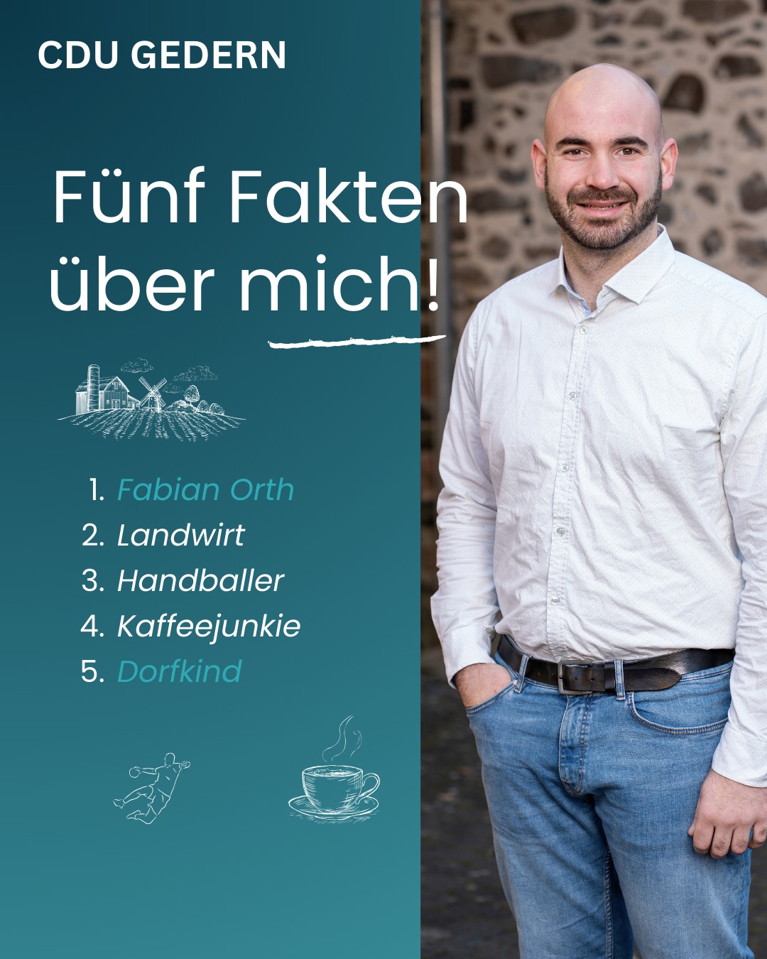 mehr👉 Fünf Fakten über unseren Kandidaten für euch mit Engagement und Verbundenheit zum Dorfleben: Fabian Orth Listenplatz 3 Prioritäten setzen. Verantwortlich handeln. Für Gedern. #kommunalwahl2026 #cdugedern #fürgedern