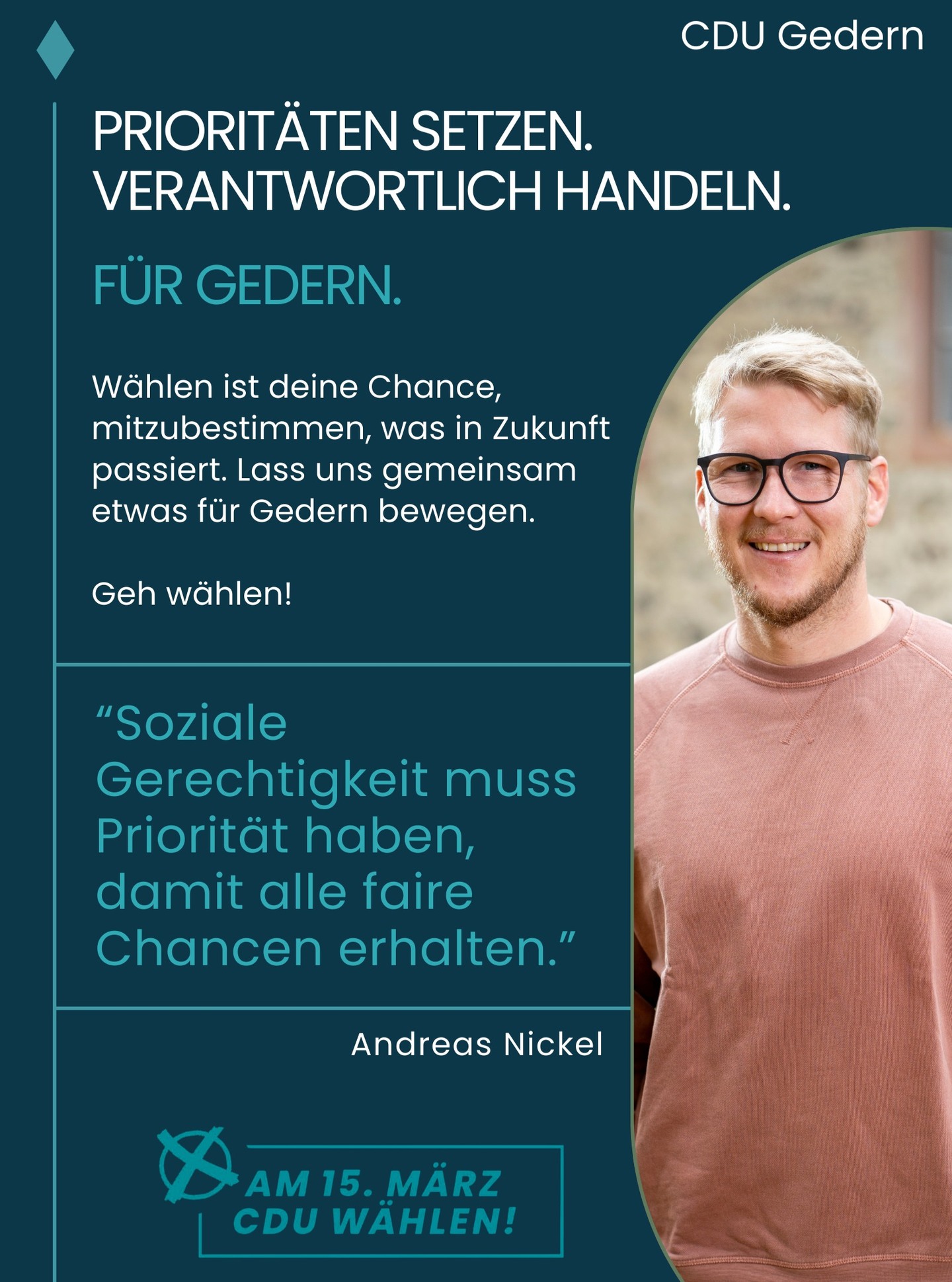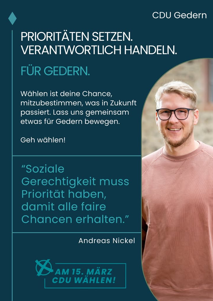 mehr🚀 Stark für unsere Heimat ? Stark für den Wetteraukreis!Aus unserem Stadtverband kandidieren für den Kreistag:🔵 Fabian Orth🔵 Jennifer Klehm🔵 Lukas LanglitzGemeinsam treten sie für die CDU Gedern im Wetteraukreis an ? mit Herz, Verstand und klaren Ideen für unsere Region.👉 Für eine starke Wirtschaft👉 Für sichere Arbeitsplätze👉 Für beste Bildung und Betreuung👉 Für eine lebenswerte Zukunft in unserer HeimatJetzt ist die Zeit, Verantwortung zu übernehmen und unseren Kreis aktiv mitzugestalten! 💪Unterstützt unsere Kandidaten ? für eine starke Stimme aus Gedern im Kreistag!#CDUGedern #Wetteraukreis #Kreistag #Kommunalpolitik #HeimatGestalten #TeamCDU #Gedern #ZukunftVorOrt