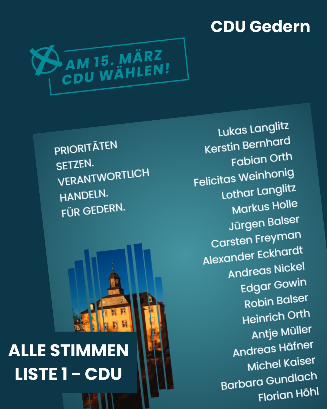 mehrWir bleiben nicht im Sollte, Hätte, Könnte oder Würde.Wir machen! 💪Gedern braucht Menschen, die anpacken, Ideen umsetzen und Verantwortung übernehmen. Genau dafür stehen wir als CDU Gedern. Gemeinsam gestalten wir unsere Stadt ? mit klaren Entscheidungen, Mut zur Umsetzung und einem starken Team für unsere Heimat.🗳 Am 15.03.2026 ist Kommunalwahl.Gehen Sie wählen und unterstützen Sie eine Politik, die nicht nur redet, sondern macht.#Gedern #CDU #Kommunalwahl2026 #WirMachen #HeimatGestalten #TeamCDU #ZukunftGedern #Anpacken #PolitikVorOrt