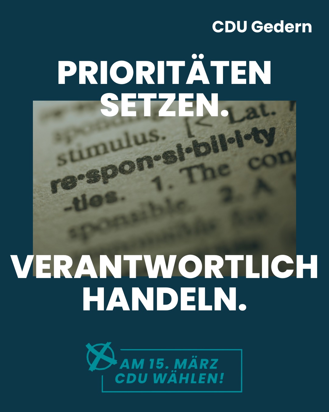 mehrAm 15. März 2026 ist Kommunalwahl. Wenn du nicht hingehst, entscheiden andere über deine Zukunft ? oft die Lautesten. Deine Stimme zählt. Für ein lebenswertes Gedern, für verantwortungsvolle Finanzpolitik, für gezielte und nachhaltige Investitionen, für Politik, die zuhört, versteht und entscheidet. 👉 Geh wählen. Gestalte deine Stadt mit. CDU Gedern ? zuhören. verstehen. entscheiden. #Kommunalwahl2026 #Gedern #DeineStimmeZählt #WählenGehen #DemokratieStärken #CDUGedern #ZukunftGestalten #Kommunalpolitik #FürGedern