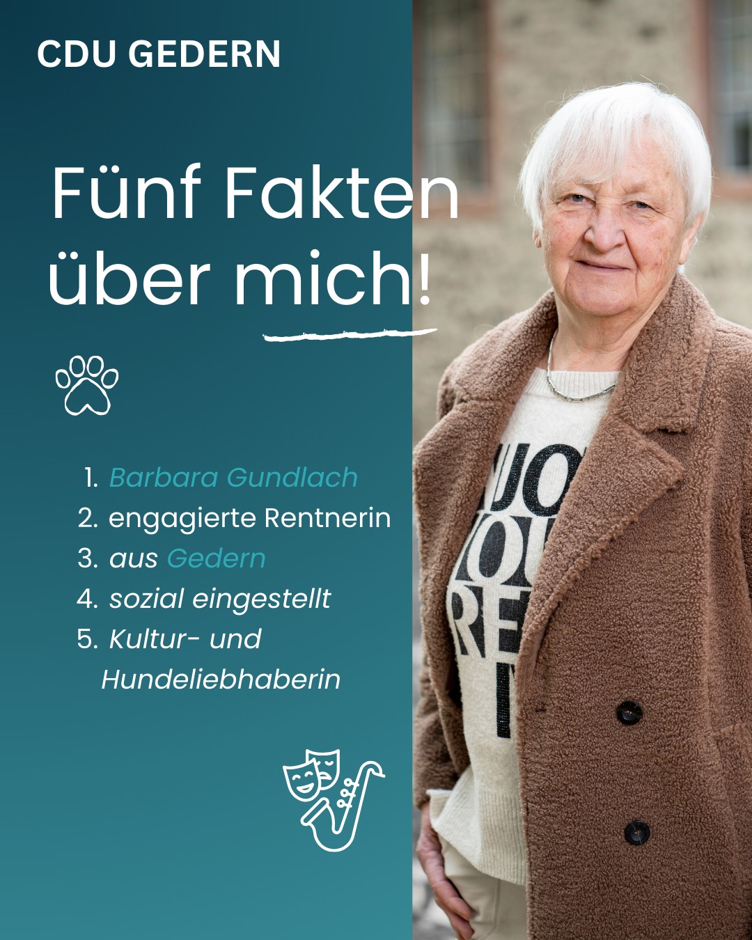 mehr👉 Fünf Fakten über unsere Kandidatin für euch mit sozialem und kulturellem ehrenamtlichen Engagement: Barbara Gundlach Listenplatz 17 Prioritäten setzen. Verantwortlich handeln. Für Gedern. #kommunalwahl2026 #cdugedern #fürgedern