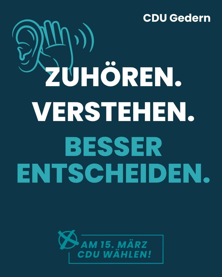 Zuhören. Verstehen. Besser entscheiden.Das ist die Grundlage guter Kommunalpolitik.Denn die besten Entscheidungen entstehen, wenn man den Menschen zuhört, die täglich mit den Themen zu tun haben ? in Vereinen, Unternehmen, Familien und unserer Stadtgesellschaft.Wir wollen denen zuhören, die es wissen.Gemeinsam für eine starke Zukunft unserer Stadt.#Gedern #Kommunalpolitik #Zuhören #GemeinsamGestalten #CDU #CDUGedern #FürGedern #Engagement #HeimatGestalten